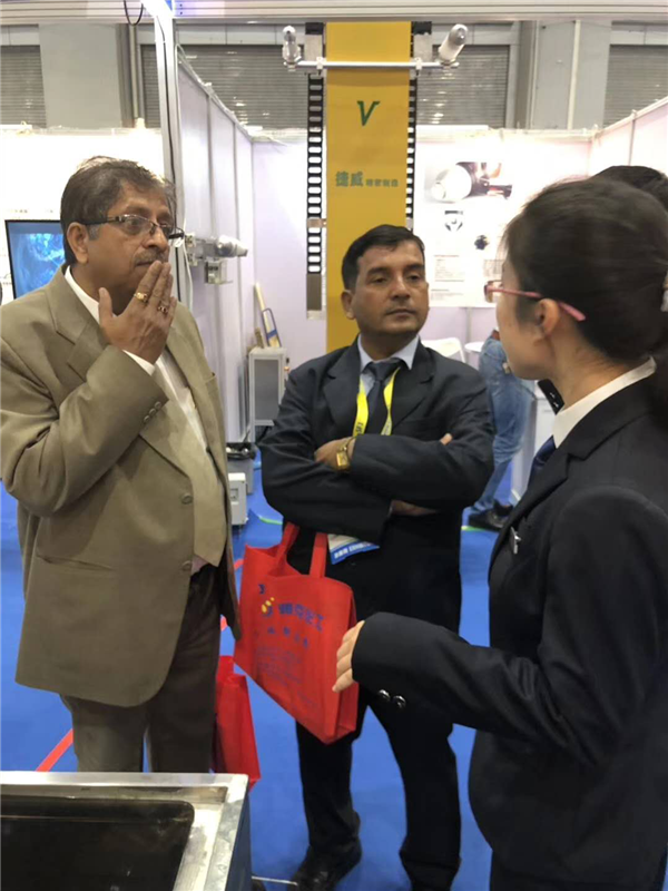 在國際貿易部工作人員的細心講說下,客商對設備有了直觀的認識,產生了濃厚興趣,表達了采購意向。